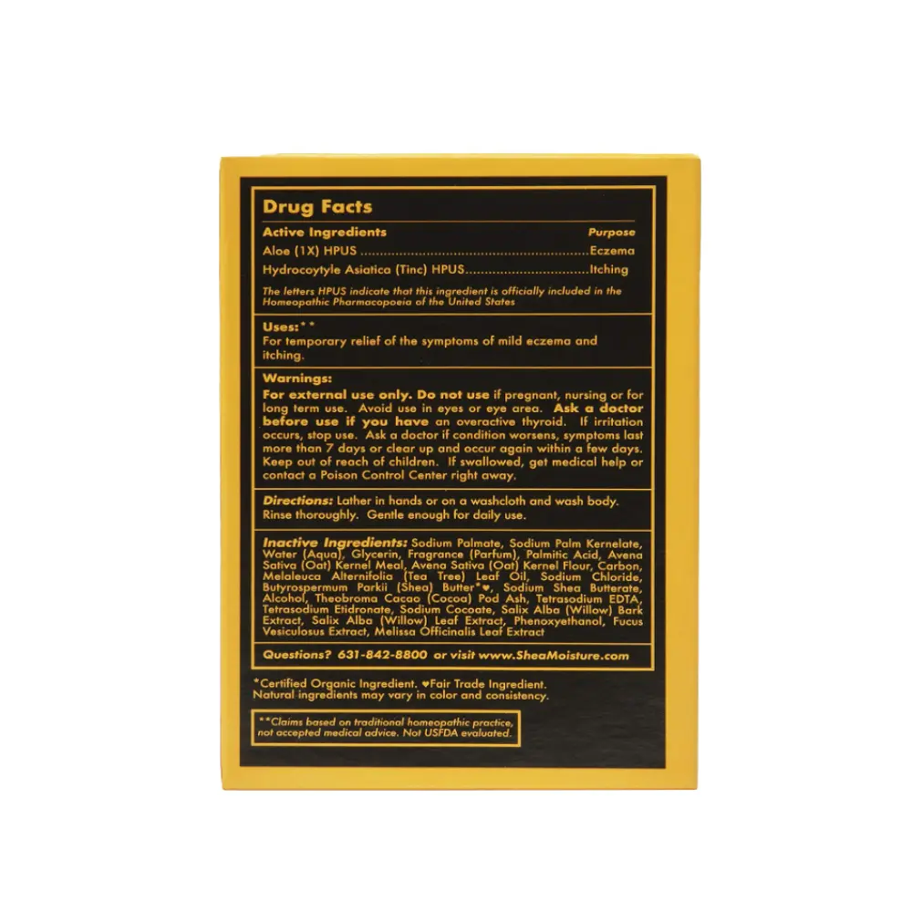 Infused with fair trade Shea Butter and homeopathic ingredients, this sulfate-free bar helps relieve mild eczema symptoms and itching while providing a soothing cleanse.
