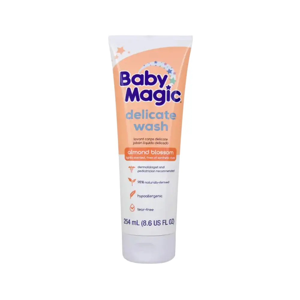Protect and pamper your baby’s delicate skin with Baby Magic Delicate Wash. This ultra-mild, pearlized formula gently cleanses while conditioning, leaving hair and skin soft and smooth.