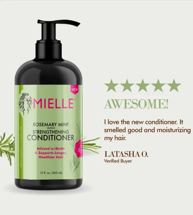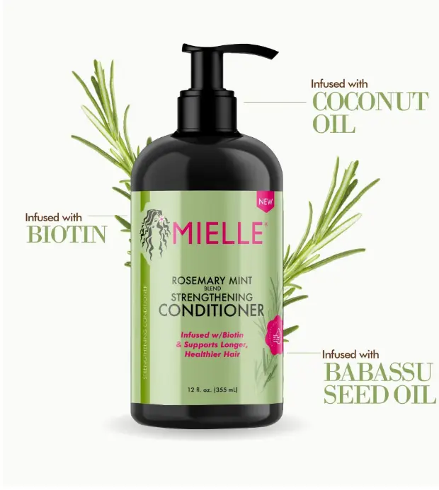 Nourish your strands with Mielle Rosemary Mint Strengthening Conditioner, crafted to deliver the perfect balance of strength and hydration.