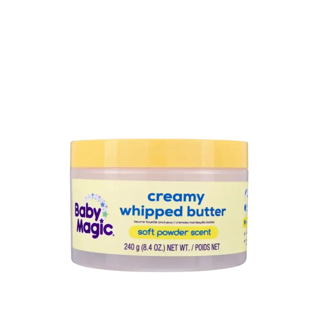 Wrap your little one in silky softness with Baby Magic Creamy Whipped Butter. This feather-light whipped formula melts effortlessly into the skin, absorbing quickly without greasiness.