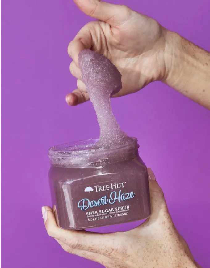 Escape into the warmth of the desert with Tree Hut Shea Sugar Scrub in Desert Haze.